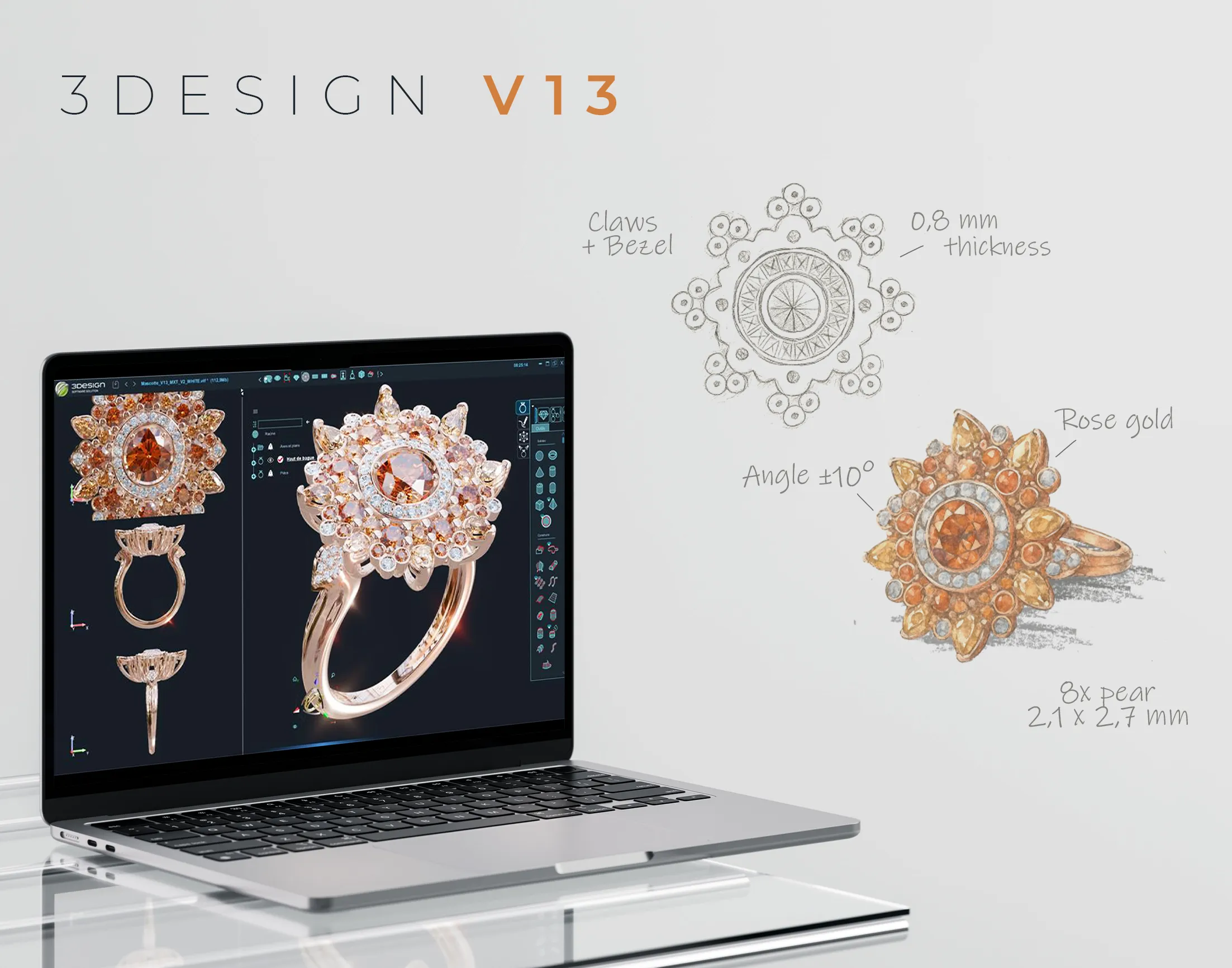 Ha valódi, gyártásra kész 3D ékszereket szeretnél tervezni, kompromisszumok nélkül, akkor a 3Design a szakma legerősebb eszköze. Több mint 25 év ékszeripari tapasztalatra épül, világszerte 5000+ ékszerész és tervező választása.