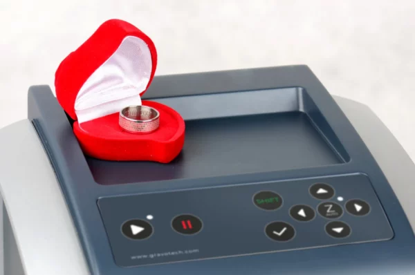 Kompakt gyűrű és karkötő gravírozó berendezés, ami kifejezetten ékszerészeknek fejlesztették ki, gyűrű és karkötő személyre szabás céljából.
